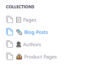 - Accédez au menu de gestion en cliquant sur le bouton avec trois lignes horizontales et dans COLLECTIONS sélectionnez 🗞️ Blog Posts.